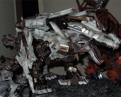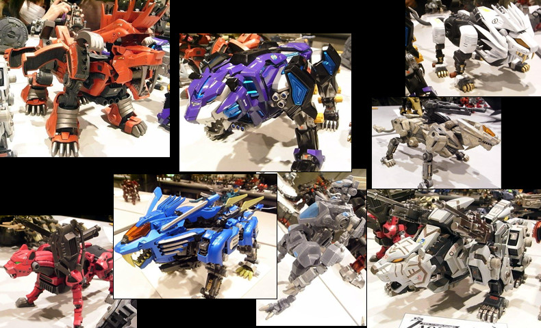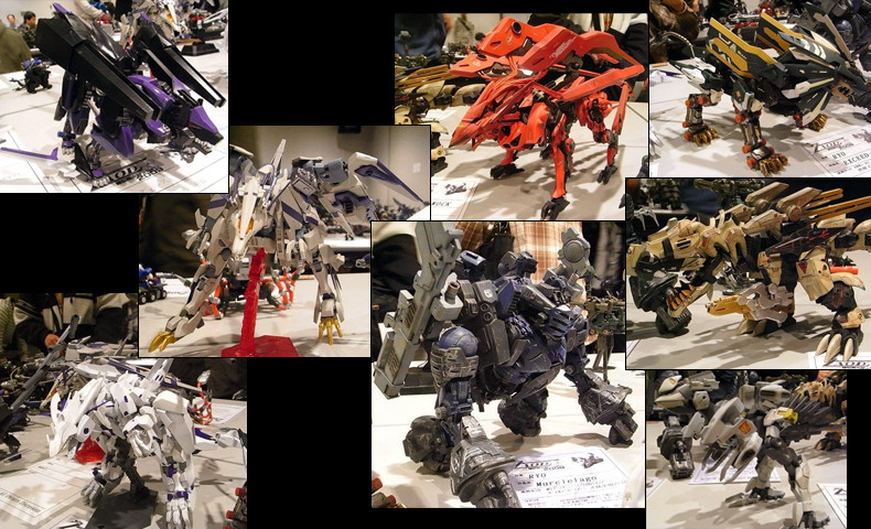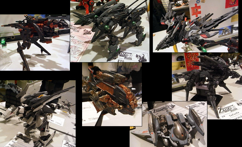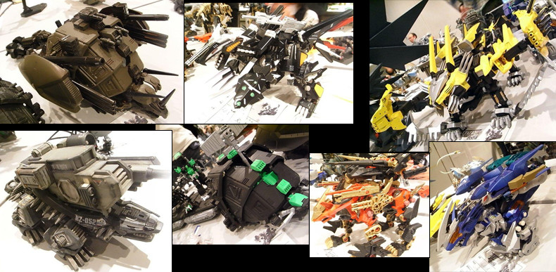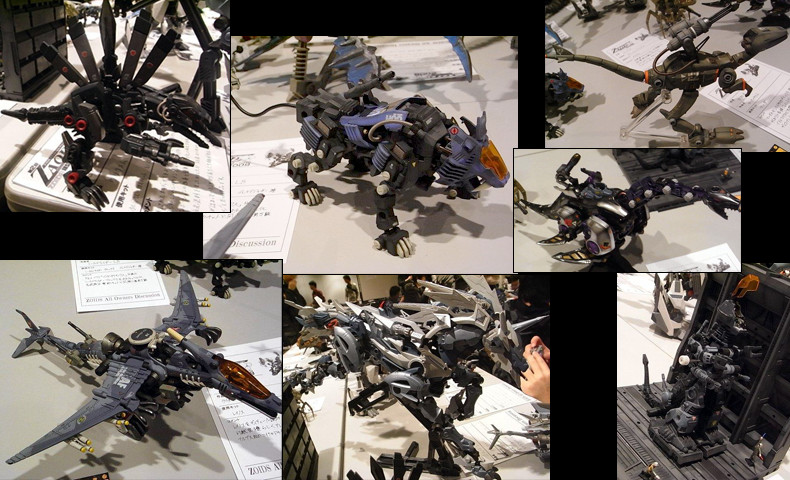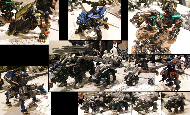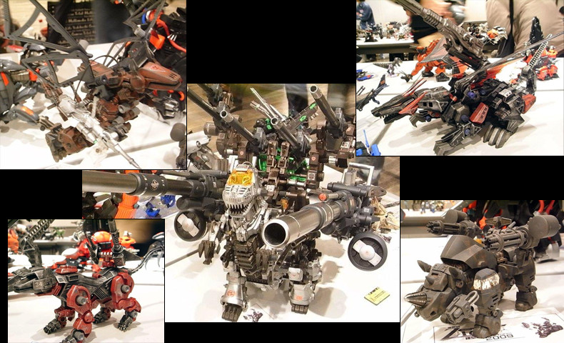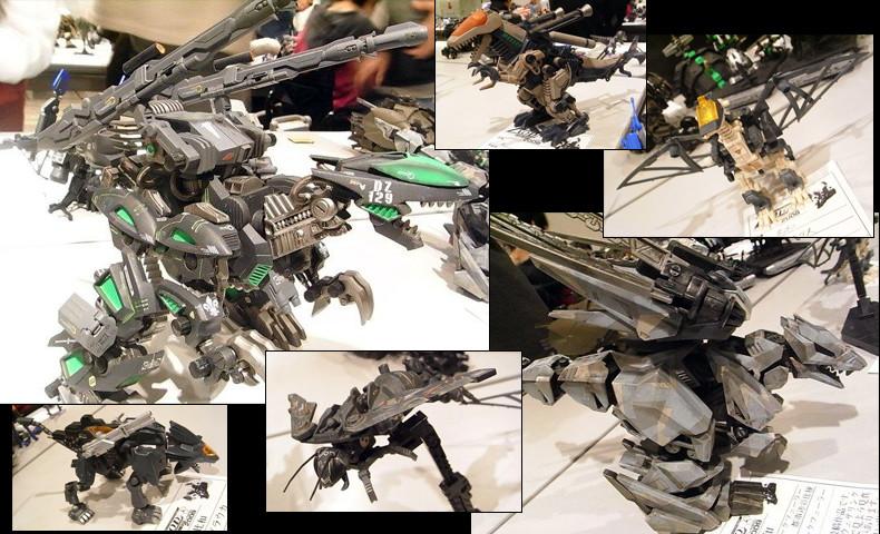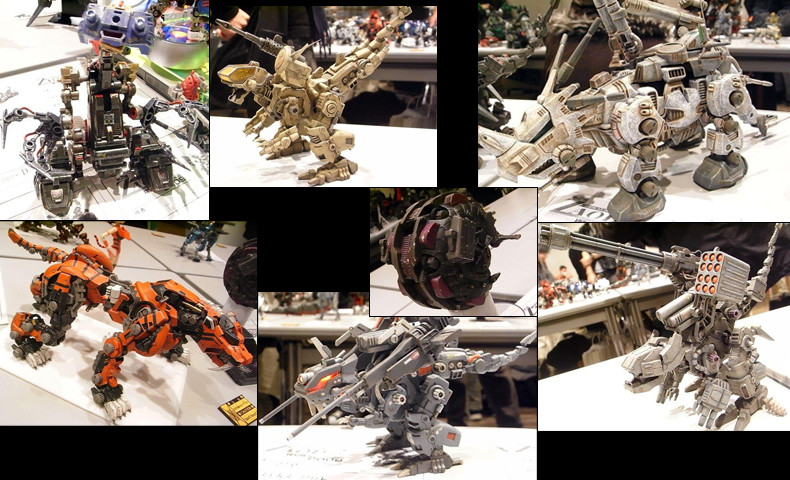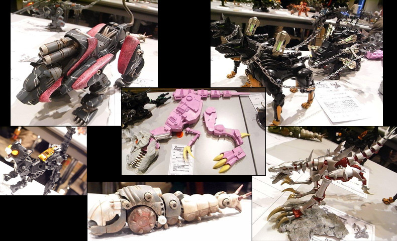 ミリタリックでゾイドらしく…。 表面処理の凄いもの、関節を仕込んであるライジャーなど、質の高い改造ゾイドが並びます。