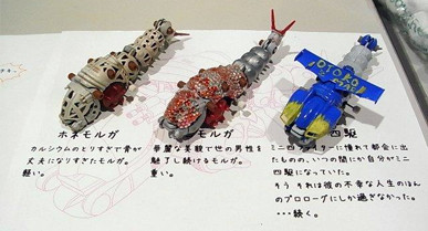 こちらも模型誌に掲載されたゾイドが並びます。 また同一作者により作品も展示されていました。中央のバイオティラノは超巨大フルスクラッチ作品として製作中のものです。