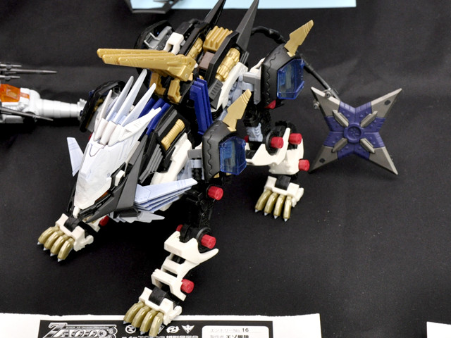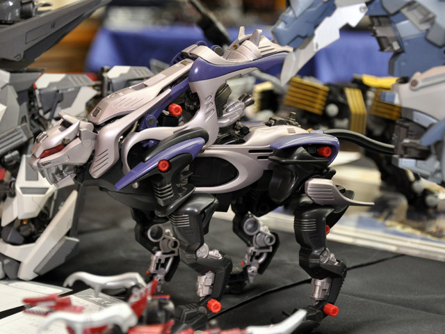 センスや技術がかなりハイレベルである事は一目瞭然ですが、それだけでなく仕上げた作品の良さを存分に引き出す術も熟知しているようです。 専用ベースもさることながら、可動ゾイドのポージングがとても上手!今にも動き出しそうなしなやかな猫科動物の動きを、ミリ単位で再現されています。 特に展示会イベントのような晴れ舞台では、いかに落ち着いて最高のポージングをセッティング出来るかが勝負と言えます。