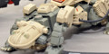 帝国軍デスファイターを参考にホバー機構、手持ち武器を装備。 共和国軍特殊部隊「モビルフォース」に所属。3機連携攻撃を得意とする。 LBゴジュで往年の9バリエーションを(ネタ入れて)作ろうその一。 最初はただ腕を付けただけだったんだよ。ホントだよ。 元ネタ知らない人が結構いてジェネレーションギャップを感じました。