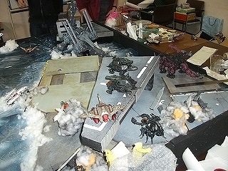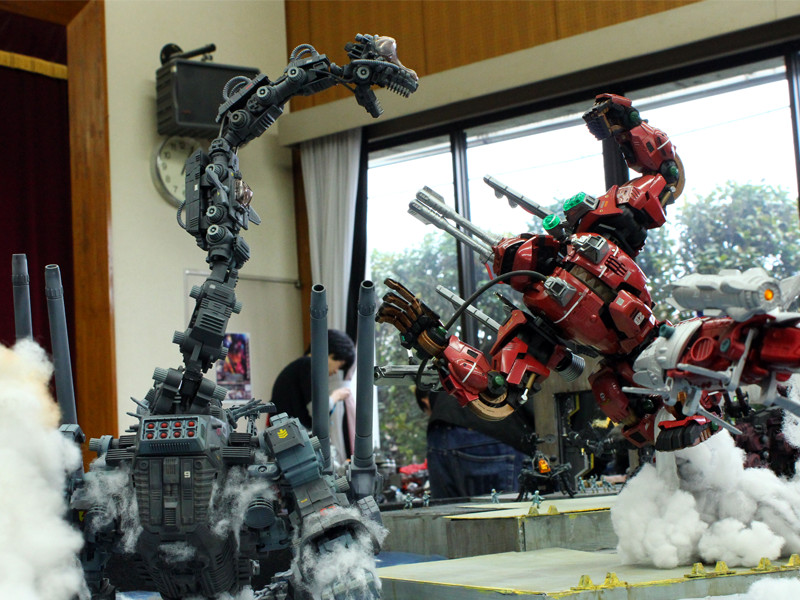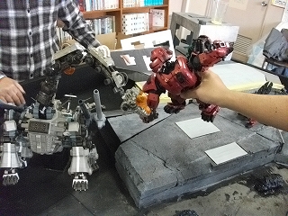 ミーティング終盤は、一度ゾイドを配置して、配置位置やポージングの再検討を行いました。