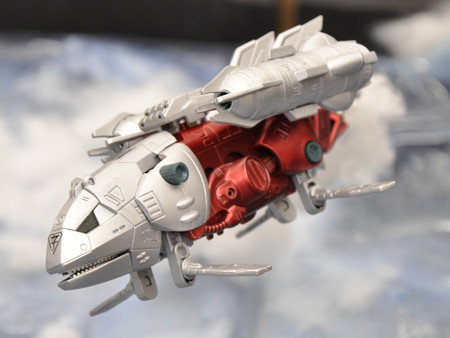 ホエールカイザー機体表面にはパステルを用いた汚し塗装を行いました。新型ゾイドとはいえ、暗黒大陸から中央大陸までの長距離飛行で汚れる・・はずと妄想(笑)