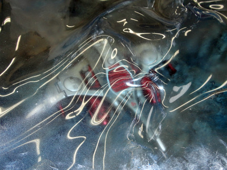 海面パーツは切りだして、形状に『うねり』をくわえて終了ではなく・・・波そのものの表現として、『ジェルメディウム』というものを使って表現します。これは合成樹脂で、固化前は盛りやすいクリーム状の液(どのくらいの粘度かというと、市販の軟膏ぐらい?w)で、乾いて硬化すると透明なものになります。これを海面パーツに塗布、盛って波を表現していきます。乾燥には非常に時間が掛かりますが、それだけに効果は大きいです。
