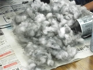 熱して曲げた塩ビ板と綿を組み合わせて作成しました。