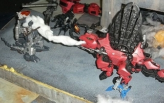 当初と第3回のミーティング段階では異なるポージング・配置のゾイドもいます。