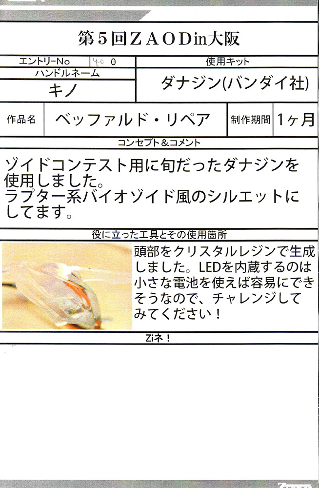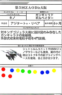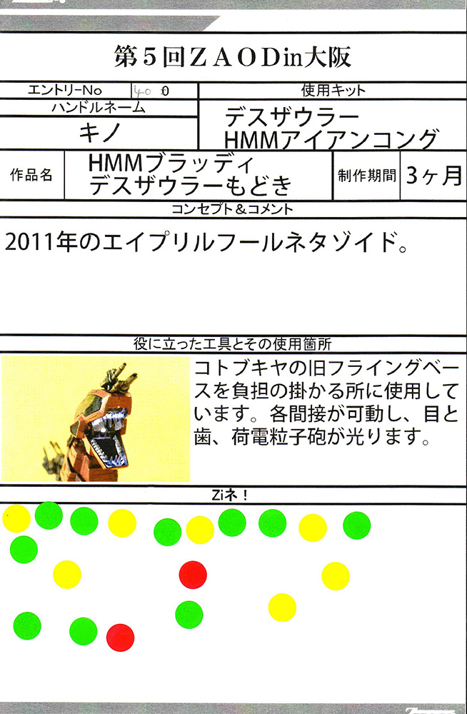 HMMブラッディデスザウラーもどき:キノさんのサイトで見たものと実物で見れて嬉しかったです。アジタート+リペア共々素晴らしい作品でした。そしてキノさんのサイトいつも拝見、応援しております。:男(21)