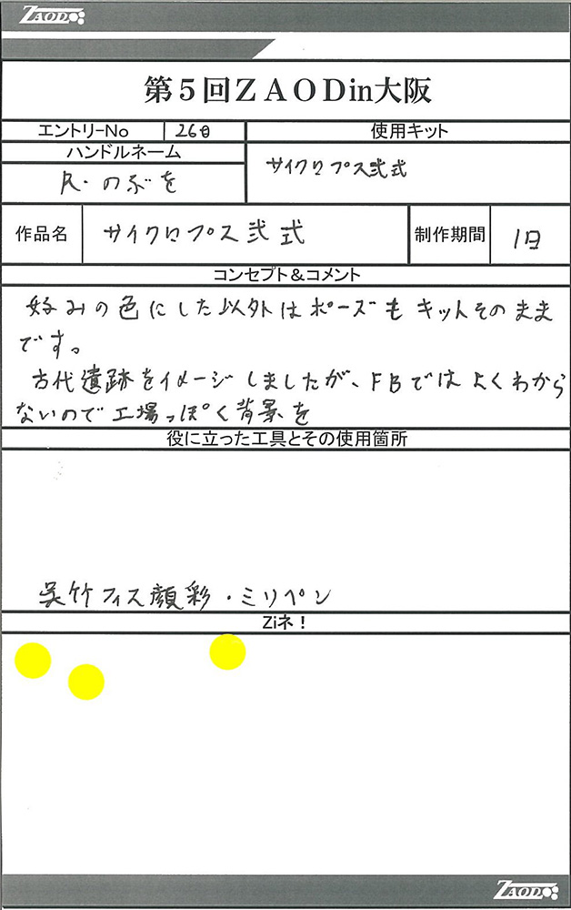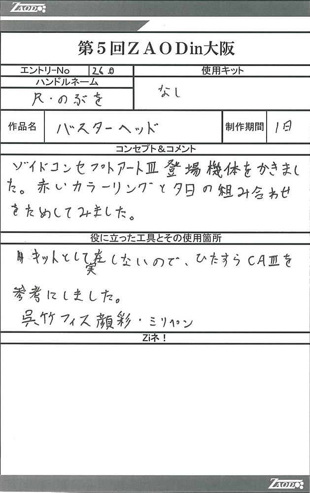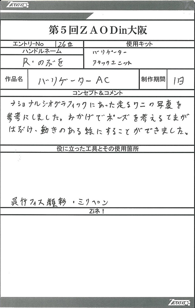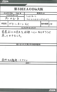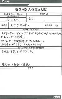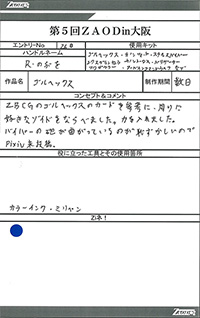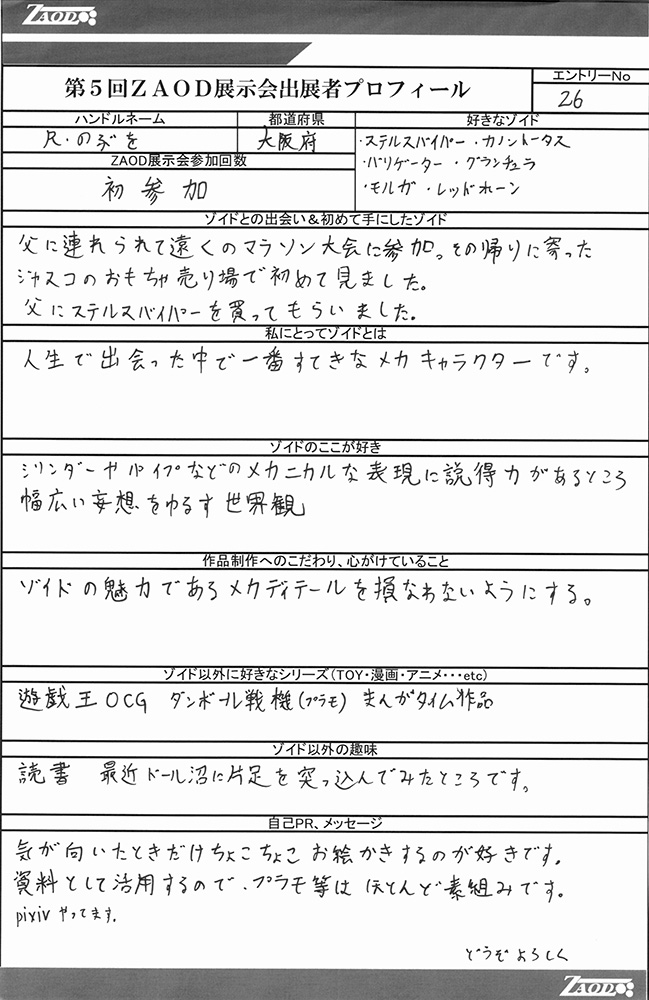 ◆作品 Thanks to everyone for all ◆プロフィールシート ◆エントリーシート ◆アンケートに寄せられたコメント ウオディック モルガキャノリー:生きものっぽく、かつちゃんメカしていて良い。構図も:女(22)