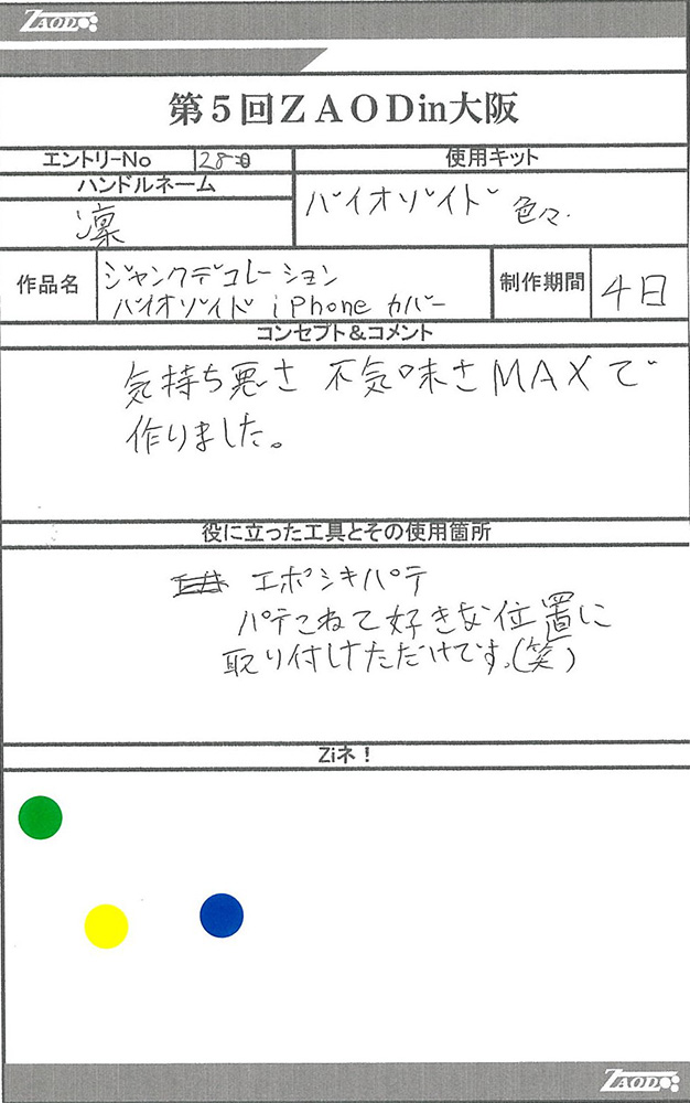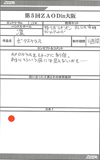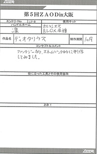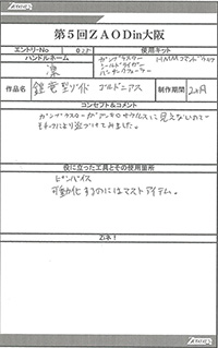◆作品 Thanks to everyone for all ◆プロフィールシート ◆エントリーシート ◆アンケートに寄せられたコメント ゼクスケラス:ハイセンス:男(31) ディオタリウス:写真でお見かけしたときに想像していたよりも大きくインパクトがあった。有機的でもあり、良い。:女(22)