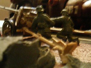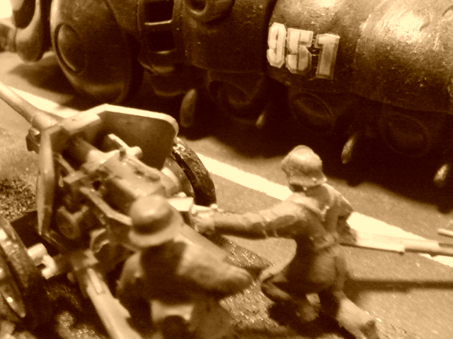 野砲はフジミの75ミリ砲を使用。砲兵と共に1/76T号戦車に付属したものです。バイクも同じくフジミ製。BMWの戦闘バイクからサイドカーを外して使用しました。