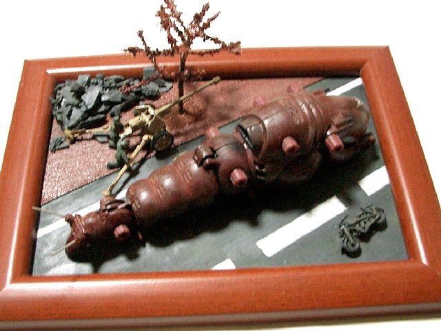 ジオラマに使用した野砲やバイクもマッドやサンドを使って汚してあります。