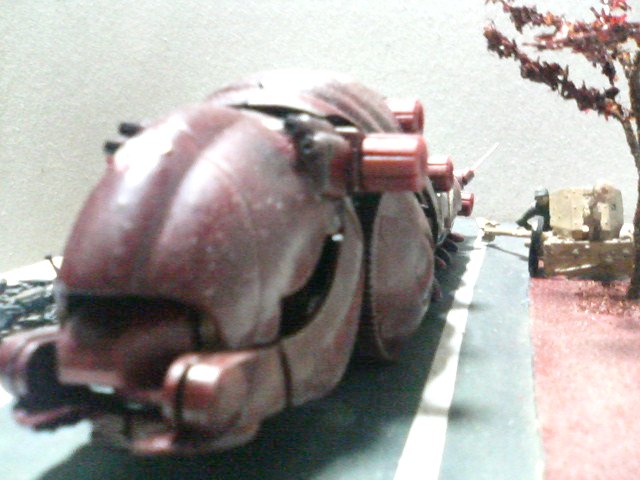 コクピット、アンテナは簡易なものに変更され、車輪脇のスパイクと格納対空ミサイルを廃止。コンテナ部分には迫撃砲を搭載している。