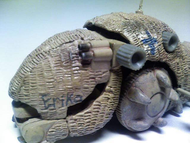 塗装は相変わらずの筆塗り。ダークイエロー単色です。機体番号と部隊マークは筆、頭部の『Erika』の文字はマーカーで書き込みました。