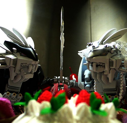 ケーキ入刀!てことでソードを生クリームに見せたグルースティック(工作用接着ガン)を使用してハードウェザリングしました。