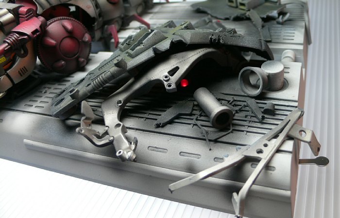 余談ですが4・5枚目の写真は燃え盛る基地内をイメージして、ハロゲンヒーターの光を当てて撮影しました。