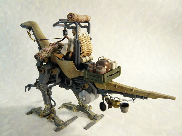おもに砂漠を旅する機体という設定ですの で、まず屋根を製作。プラ棒をライターであぶって(火元注意!)曲げ工作。