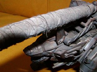 背部にオリジナルの砲を追加。キャノリーユニットをベースに改造、砲身の延長、ジャンクパーツ、タコ糸、テッシュペーパー等でディテールアップ。