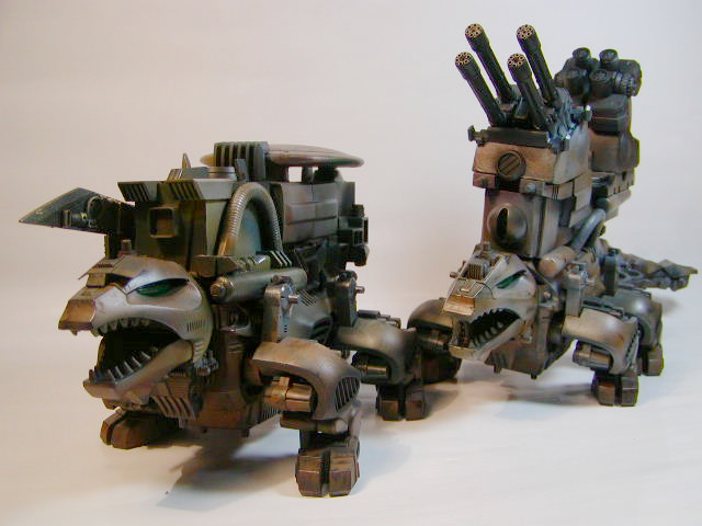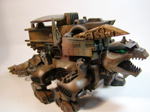 グレーのパーツ(脚や尻尾)はエアクラフトグレー(Mrカラー)を塗装後、パイプ風パーツを塗り、混色エナメルで墨入れ兼ウォッシング