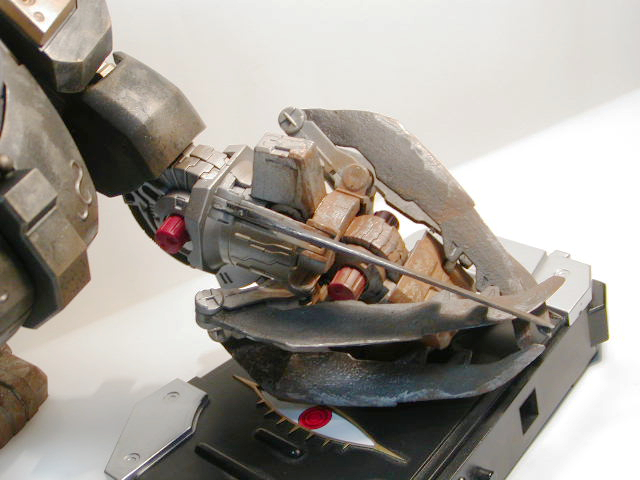 左手爪 ダークアイアン(メタルカラー)で塗装後、部分的にクロムシルバー 石はね等の表現 リューターが間に合わなかったので