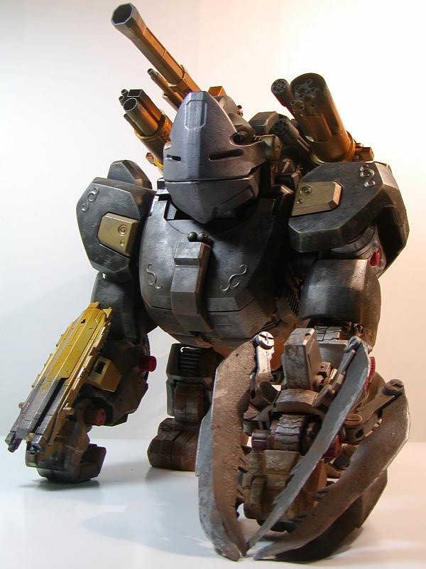 顔 ゴリラ・・と言うより某イボンコ司令官や料理父のイメージであごを大型化(おい 塗装 ハリー専用機=金&黒の重箱カラー(専用ダークホーン)のイメージで塗装