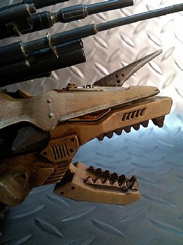 ■ ギヤボックスを自作し、連動ギミックを追加。ガトリングガンはコトブキヤのAC用パーツ、その他はプラパイプとプラ棒でスクラッチ(ノーマルへ交換可能)。