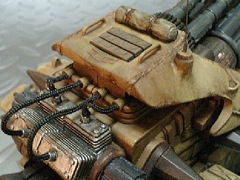 ■ 後部エンジンは、ガンメタルで下地塗装後に、薄めたクロームシルバーを筆塗り。シリンダーヘッドから滲んだオイルが表現できました。