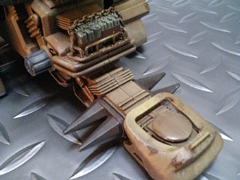 追加ギミックや追加エンジン、それから真鍮部品を使った手すりや勿論プラ板で作ったらしき装甲板など雰囲気抜群な見所多い作品ですが、