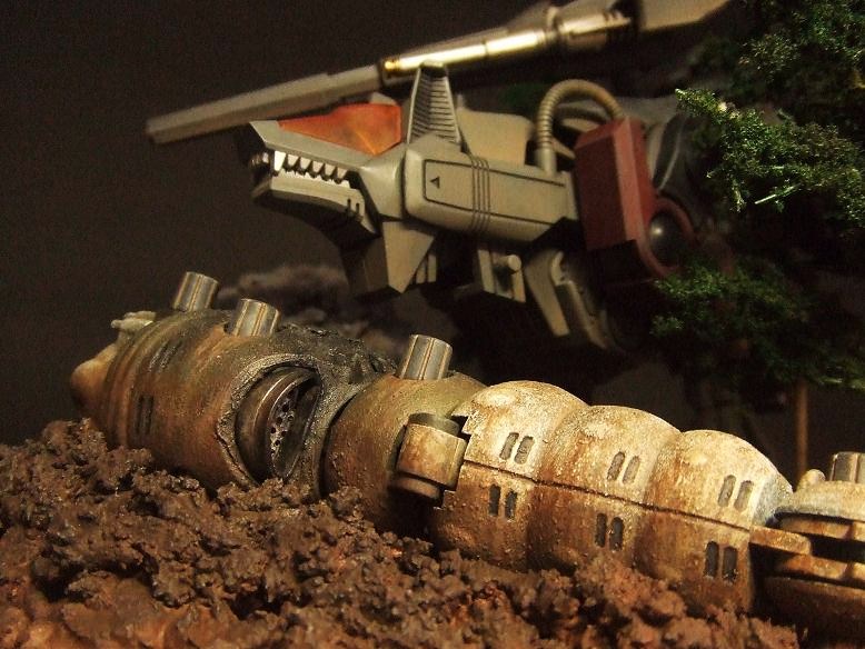 ゾイドのジオラマ作品はプロ・アマ合わせてもまだ数少ないですが、「生物としての躍動感」と「兵器としての重厚感」を