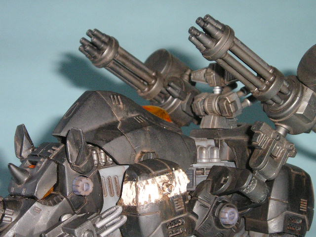 大型のガトリングを両サイドに構えてもライモスなら踏ん張りが利きそうですから、武器のチョイスも機体にマッチしていると思います。