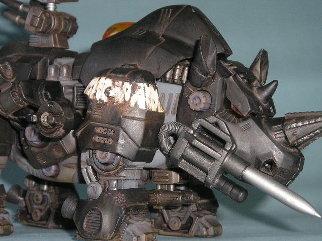 ・ヘビーライモスの特徴である角は使い過ぎで磨り減ってしまい、兵器としては役に 立たず、ということで急遽頭部(顎?)にパイルバンカーとミサイルランチャーを増設。