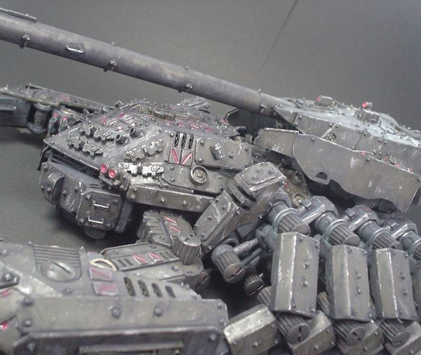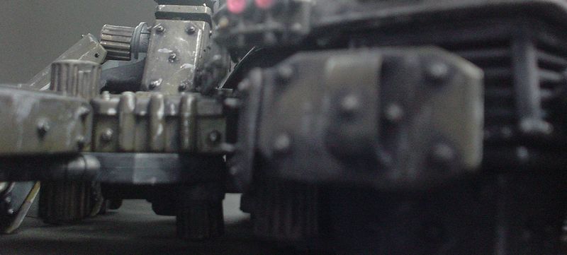 当初製作過程の写真を見せて頂いたときは、確かアーマー各所に車輪が付けられていましたが、それはやはりオミットして正解だったと思います。