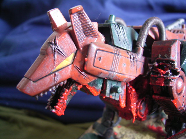 基本塗装を終わった後に、炙ったカッターやドリルを押し当てる方法で装甲部分を中心に銃痕や切り傷を表現。