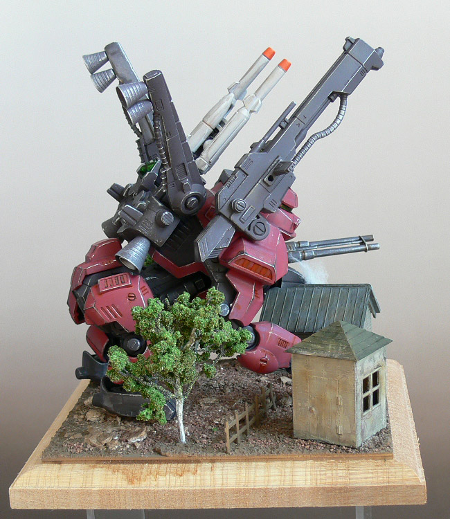 可動範囲拡大の為のアーマー切除も躍動感重視のジオラマとしては良い判断だったと思います。