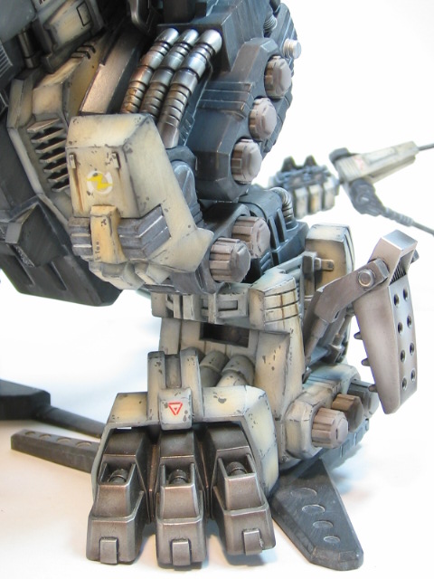 黒ベースの上からホワイトグラデーション(いわゆるマックス塗りですね)をされていてとても重厚なイメージに仕上がっています。巨大なゾイドにはマックス塗りがよく似合いますね。