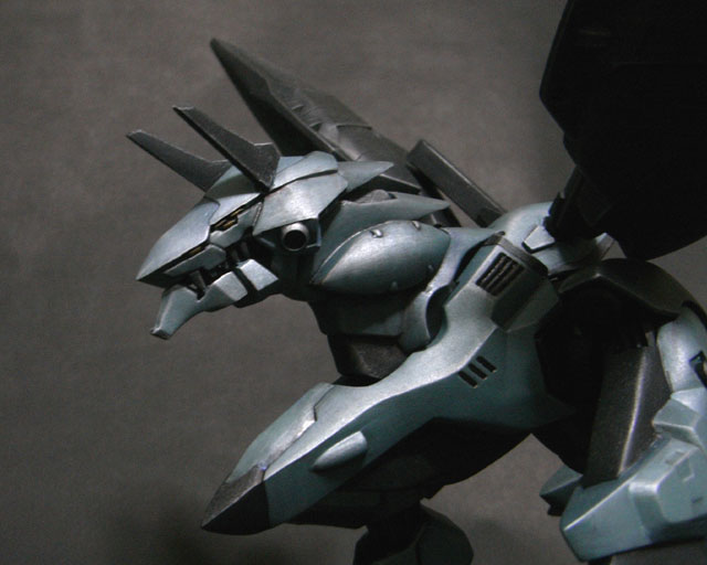 武装:背部ユニットはエステバリスの腰アーマーにジャンクのアーム、フラグメントは1/144ハイドラガンダムの スカートを張り合わせて製作