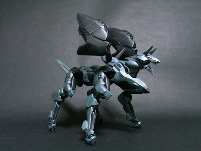 各部スリット:HMMシールドライガーの板状パーツを使用 各部間接:生体部品の再現として市販のLANケーブルをはりつけて作成