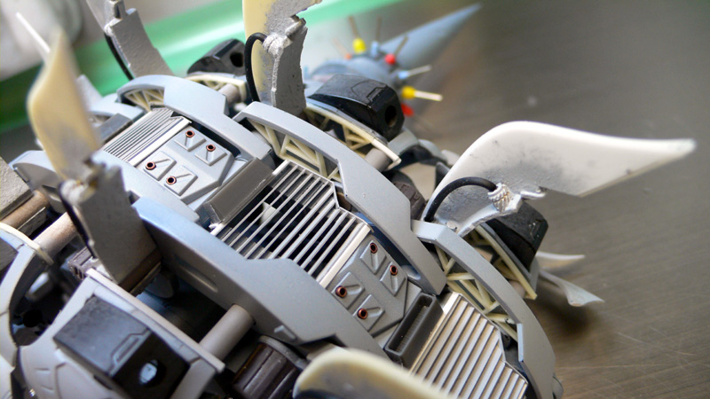 背面のフィンモールドは切除た上で、エバグリ素材を使用して新造。これは同時に軽量化にもなってます。