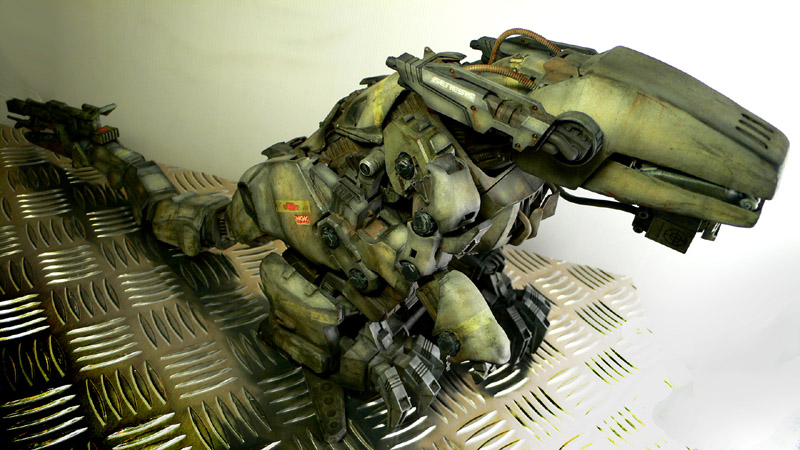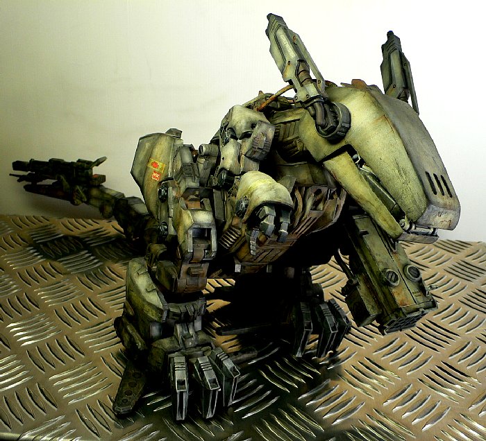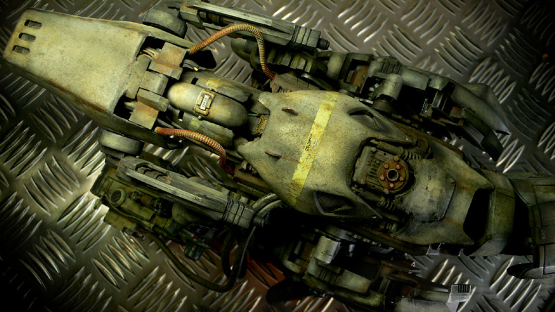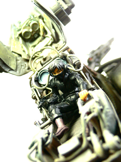 ■ 塗装コメント まだエアブラシを使い始めたばかりの頃の作品でしたから、マックス塗りを楽しんで塗りましたw ウェザリングは、確か油絵具などでフィルタリングし、あとは通常のエナメルでウォッシングを施しました。 数年振りに自分の作品と再会したわけですが、どこをどうやって汚し入れたのか?とか理屈で分かっていても これと同じ色味を再現することはきっともう出来ないと思いました。 ウェザリングって勿論技術やセンスも大いに関係しますが、その時々の「偶然性」も関わってくるのが面白いところですよね。 |