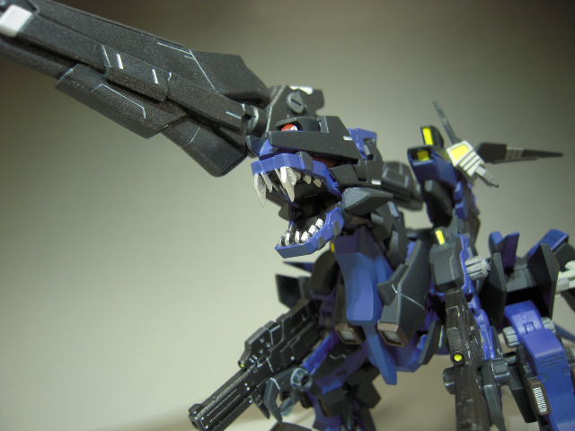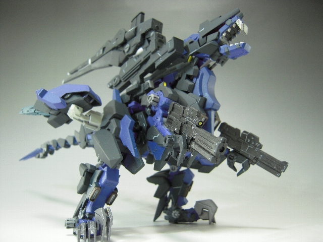 パープルを吹いてその上に濃紺を少量吹いたものをベースにしてジャーマングレーで外部装甲を塗り分けています。