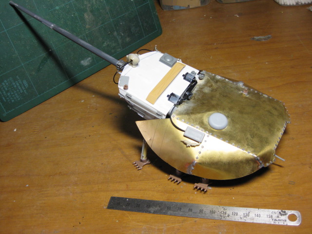 ■ 製作コメント 外装を真鍮板とプラ板で作りそれ以外はほぼジャンクパーツの組み合わせ 裏側は甲殻類特有の気持ち悪さを出したつもりですf^_^; |