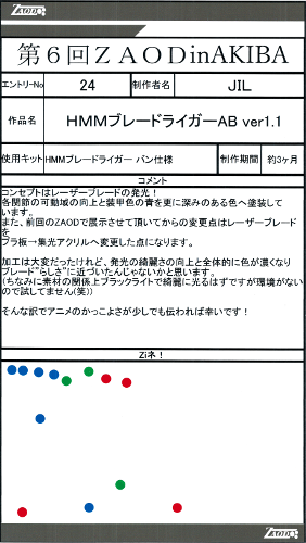 もう一方のブレードライガーはブレードの発光状態を表現した面白い作品でした。
