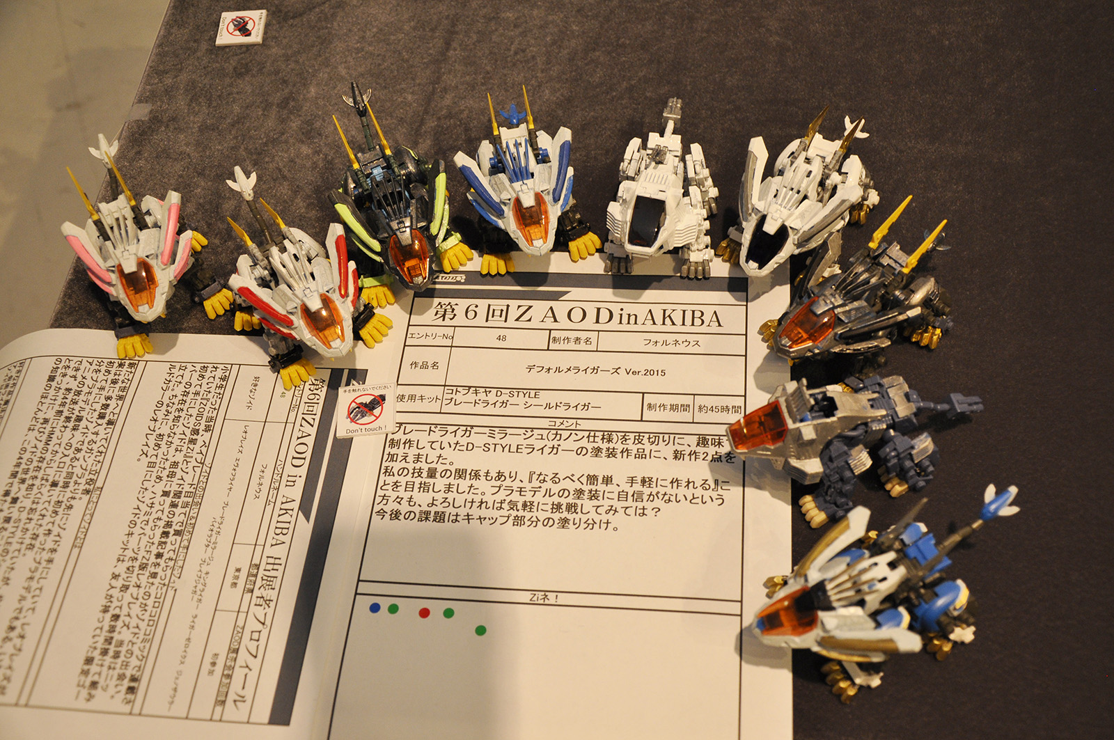 ◆作品 フォルネウスさんの展示作品です。 凄くライガーだらけ! 色々なカラーリングのDスタイルのライガーが集まっている様はさながら猫の集会・・・かわぇえ。 Thanks to everyone for all ◆プロフィールシート ◆エントリーシート