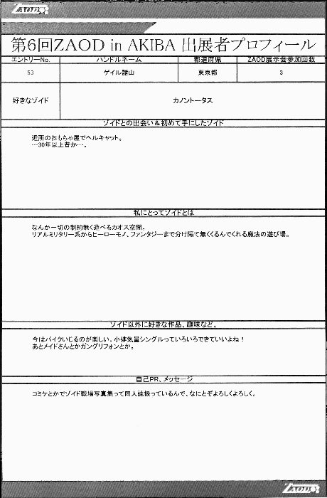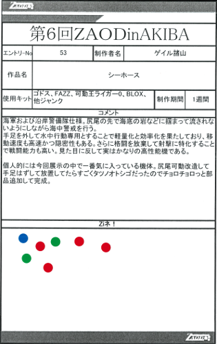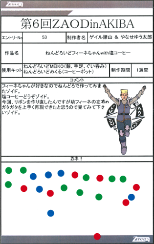 ◆作品 ゲイル諸山さんの展示作品です。 ダグラムを彷彿とさせるミリタリー色の強い作品からねんどろフィーネちゃんまで、 幅広い作風を手掛けるおそろしい子! Thanks to everyone for all ◆プロフィールシート ◆エントリーシート ◆アンケートに寄せられたコメント ねんどろいどフィーネちゃんwith塩コーヒー ・フィギュアの可愛らしさは勿論、コメントのグリコハーマンがツボった為。