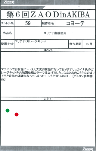 ZAOD名物キングゴジュラスをはじめ、ガレージキットを使用したライガー系の作品を出展されていました。