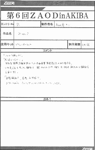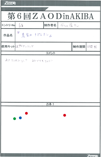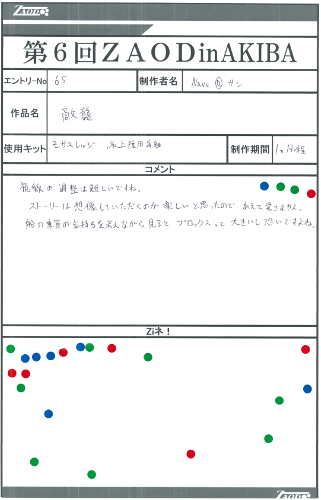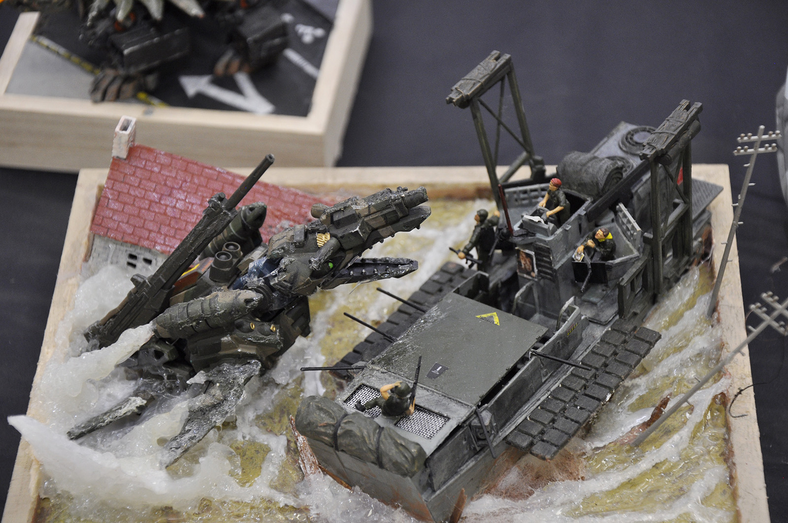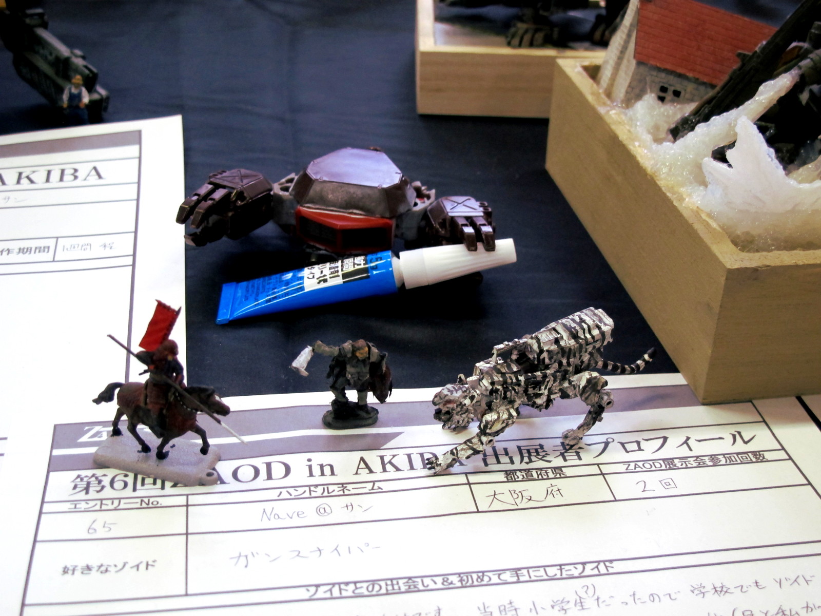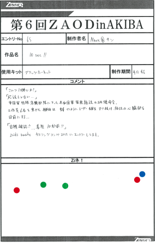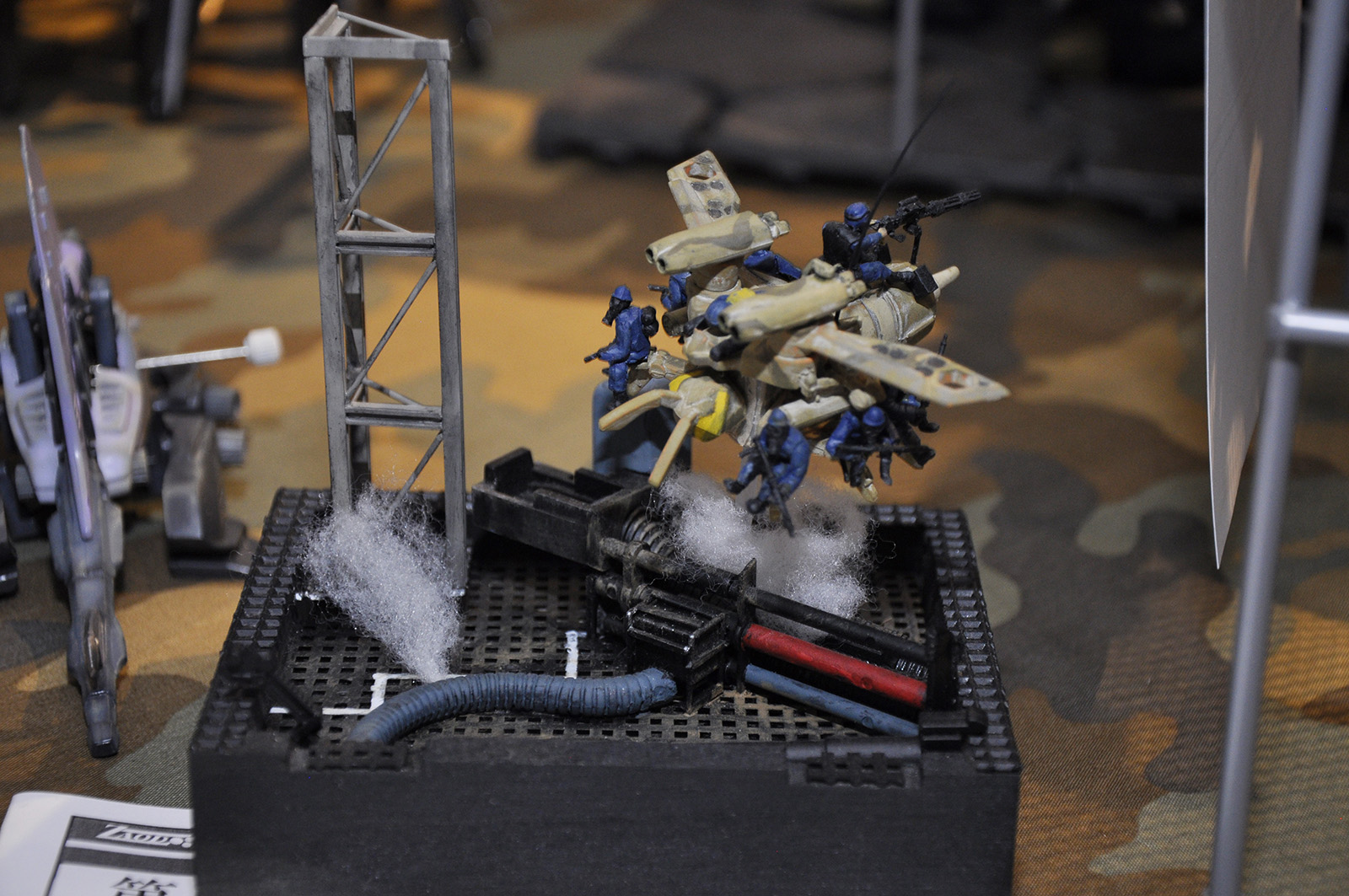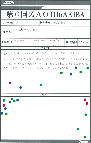 ◆作品 Nave@サンさんの展示作品です。 兵士を絡めたジオラマの表現が巧みなゾイダー 兵士一人一人の表情のつけ方が上手いですね。今回は水の表現など新しい表現にも挑戦されています。 Thanks to everyone for all ◆プロフィールシート ◆エントリーシート ◆アンケートに寄せられたコメント Comfortable trip ・自分も最近「プライベート・ライアン」を見たので、小型ゾイドのカノンダイバーも戦場にいたら大きいだろうなと思いました。 敵襲 ・緊迫感がある。