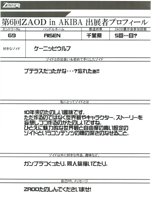 稀代の狼型ゾイド調教師が最新モード黒椿をZAODにて発表してくれました。