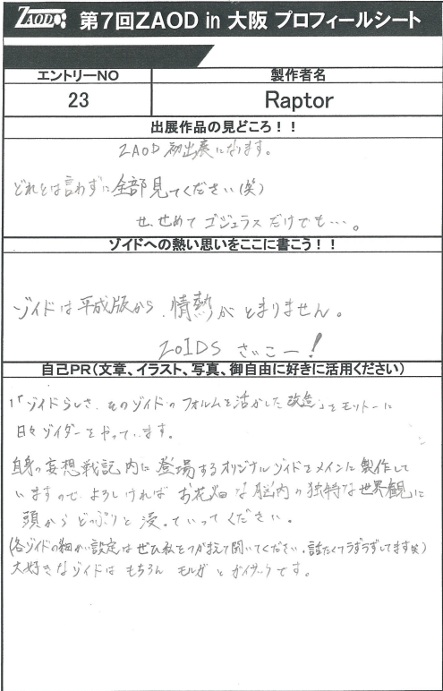 Raptorさんの展示作品です。