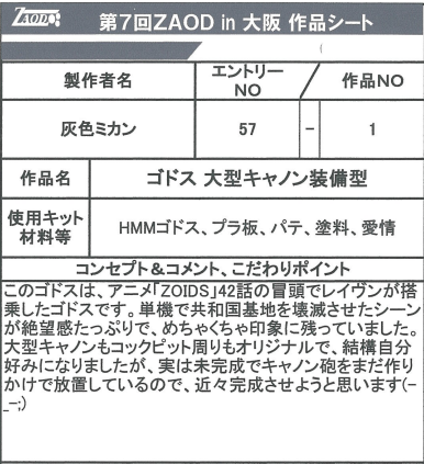 ◆作品 灰色みかんさんの展示作品です。ガナー仕様やケンタウロス仕様のゴドスが可愛い。 Thanks to everyone for all ◆プロフィールシート ◆エントリーシート ◆アンケートに寄せられたコメント シャドーフォックス森林戦使用 ・渋いチョイスのカラーが素敵。