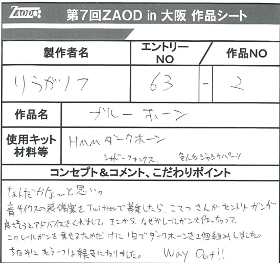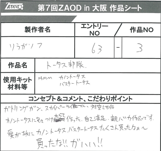 ◆作品 りうガノフさんの展示作品です。 カノントータス他、砲撃戦ゾイドがいっぱい! ZAOD執行部さん(@zaod_team)がシェアした投稿 - 1月 29, 2018 at 3:28午前 PST Thanks to everyone for all ◆プロフィールシート ◆エントリーシート ◆アンケートに寄せられたコメント ライトニングサイクス・ブルーローズ ・スマートな機体にキャノピーが新鮮