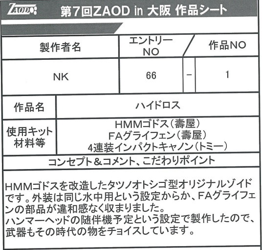 ゴドスベースの水中戦用ゾイドハイドロス等、ゾイド改造機をエントリーされています。