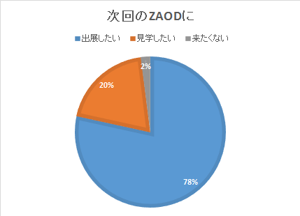 また今回、アンケートの回答数も通常の半分ほど、また出展者が大多数といった状況でしたので 回答数をあげ、より幅広い立場の方の意見を聞くには更に工夫が必要と感じました。